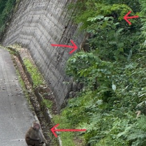 少し離れたところに車を停めて見守ってたら子どもがこっちに気付いて親を急かすように道路脇の谷に降りていきました。